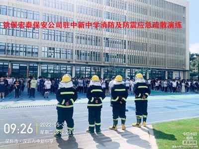 深圳市中新中學為創建平安校園,我司鐵保宏泰深圳保安服務公司協助中新中學進行消防及防震應急疏散演練。增強學生的安全防范意識,增強學生的安全知識,全面提高學生面對地震、火災等應急事件的處理能力,在學校發生緊急情況時,全體師生能安全、快速地進行疏散。通過防震、消防應急疏散演練,使全校師生掌握應急避震、避火的正確方法,熟悉地震或火災發生后緊急疏散的程序和線路,確保在地震、火災來臨時 ,我校防震、消防應急工作能快速、高效、有序地進行,從而最大限度地保護全校師生的生命安全,特別是減少不必要的非震、非火傷害。同時通過演練活動培養學生聽從指揮、團結互助的品德,提高突發公共事件下的應急反應能力和自救互救能力。