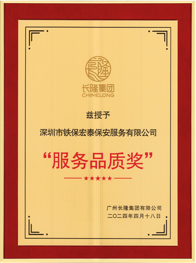 熱烈祝賀我司鐵保宏泰深圳保安服務公司成功競選長期為廣州長隆度假區勞務保安外包供應商,長隆集團公司特授予我司鐵保宏泰保安公司“服務品質獎”。