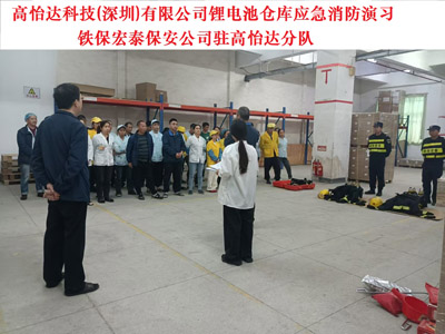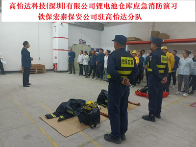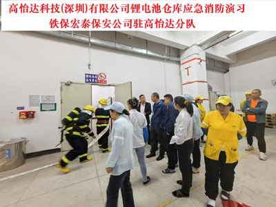 2024年11月28日高怡達科技(深圳)有限公司鋰電池倉庫應急消防演習 ,鐵保宏泰保安服務公司駐高怡達分隊。高怡達科技(深圳)有限公司成立于2004年11月05日,注冊地位于深圳市龍崗區(qū)橫崗街道六約金塘工業(yè)區(qū)勤富路30號B、C棟,法定代表人為林尤澳。經(jīng)營范圍包括無。^生產(chǎn)經(jīng)營各款電源供應器、變壓器、馬達組件、電源插頭、線圈、電源組件、插頭電源線、穩(wěn)壓電源、紫外光牙刷頭消毒器、LED燈板、牙刷玻璃杯、機器人、自動化設備、機械及機電設備、制造管理信息化系統(tǒng)。上述產(chǎn)品的研發(fā)設計與技術服務。